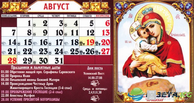 Православные церковные праздники в августе 2017: Календарь по дням августа