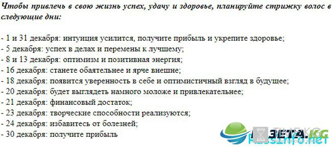 28 — в этот период декабря пряди отличаются слабостью, поэтому тревожить их парикмахерскими манипуляциями не следует.