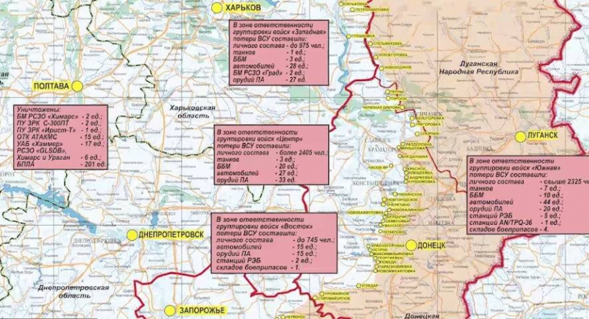 Потери ВСУ в Харьковской области, ЛНР и ДНР, в зоне группировки войск «Запад» составили до 975 военных.