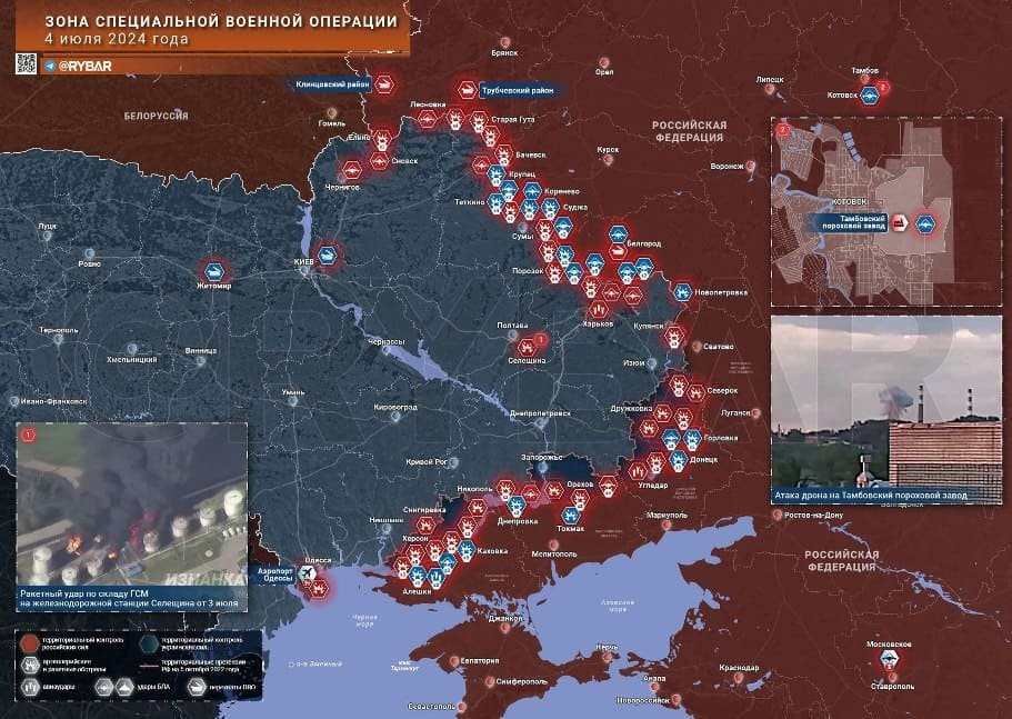 Новая карта боевых действий на Украине в зоне СВО по состоянию на 05.07.2024