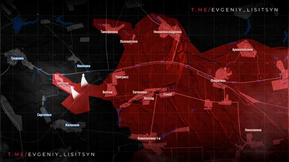 На Покровском направлении ВСУ продолжают отступать и сам противник уже не скрывает, что ситуация близка к катастрофе. "Враг словно сорвался с цепи", - пишет военно-аналитического ресурса "DS", работающий на украинский ГУР. Российские силы продолжают дожимать ВСУ у Желанного, обходя его с юга и севера и тем самым беря сало в клещи. Также российские силы продвигаются на западе Веселого и вплотную подошли к Межевому.