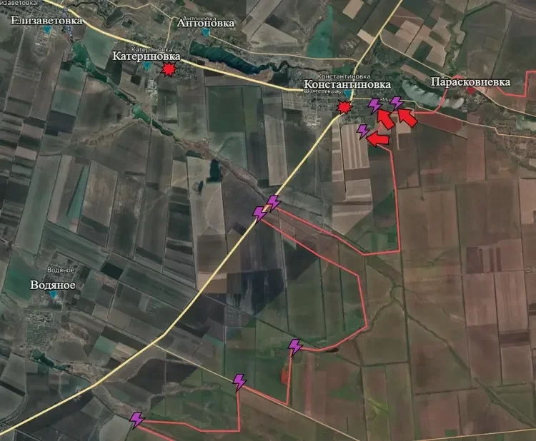 На Угледарском направлении продолжается штурм Константиновки. На восточной окраине села на нескольких БМП успешно высадился десант ВС РФ у одного из домов улице Чкалова. Зафиксированное на видео продвижение составило как минимум двести метров на запад вдоль улицы. Учитывая, что российские войска устраивают последовательные штурмы подступов села последние четыре дня, с высокой вероятностью штурмовикам удалось продвинуться дальше вглубь села. Тем не менее, несмотря на кое-какие успехи в Константиновке, бои здесь идут ожесточённые и кровопролитные. Враг не раз успешно атаковал штурмовые группы ВС РФ (и закрепившиеся в селе, и по дороге к нему) при помощи FPV-дронов.