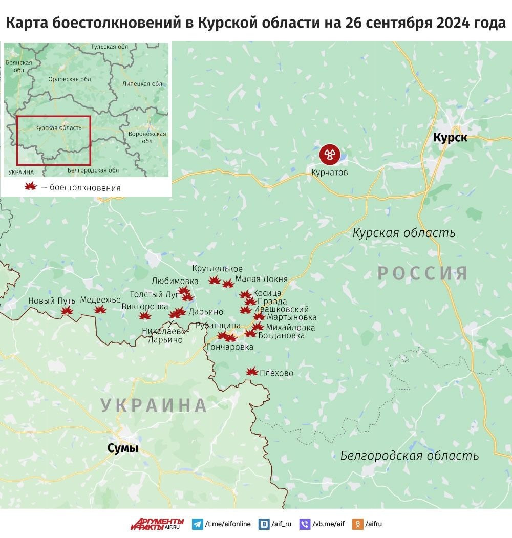 Карта боевых действий в Курской области: данные на сегодня, 26 сентября