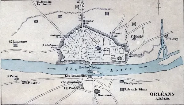 План Орлеана в тот момент. Крепость Турель была предмостным укреплением на левом берегу Луары, защищавшим мост, который был разрушен