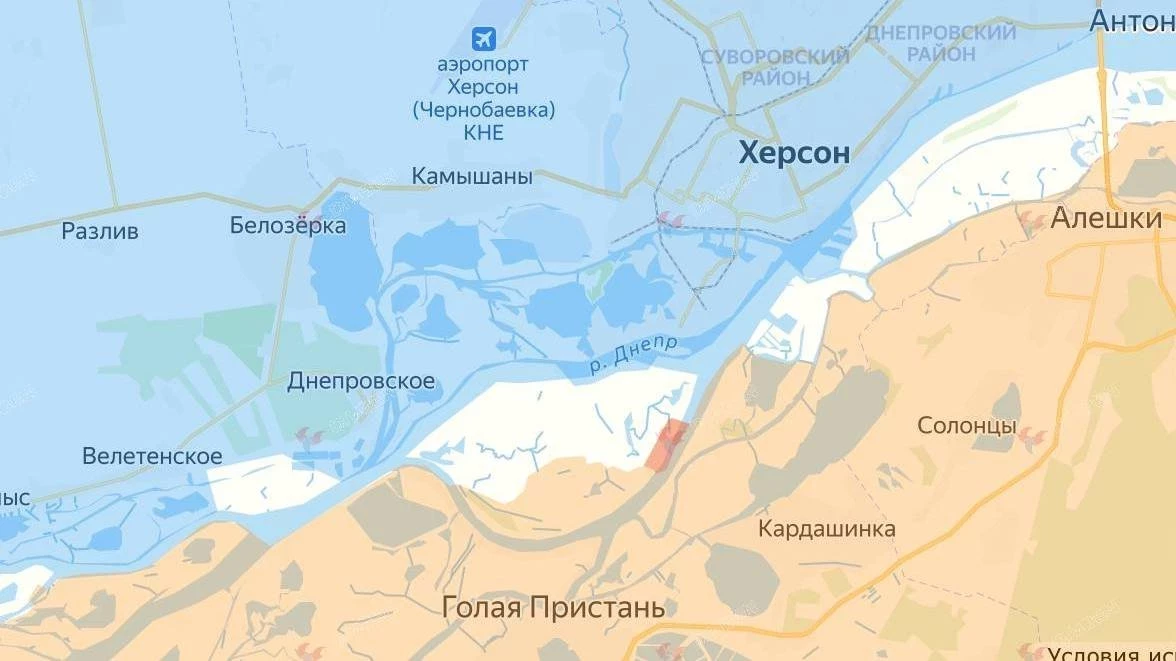 Военные ТГ-каналы подтверждают присутствие бойцов ВС РФ на дачах близ Херсона. Речь может идти о создании плацдарма на западном берегу Днепра.