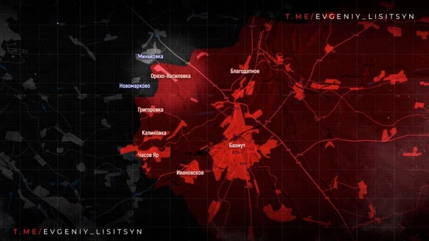 Продолжается битва за Часов Яр. С юга российские войска заняли урочища «Ступки» и «Кринички» на участке шириной более 3.5 км на глубину свыше 1.5 км, продолжая давить в направлении южной части Часов Яра и н.п. Ступочки. В самом Часов Яре ВС РФ продвигаются в микрорайоне «Новосеверный» и в застройке южнее «Часовярского огнеупорного комбината». Также российская армия активизировалась в районе трассы, ведущей в Константиновку.
