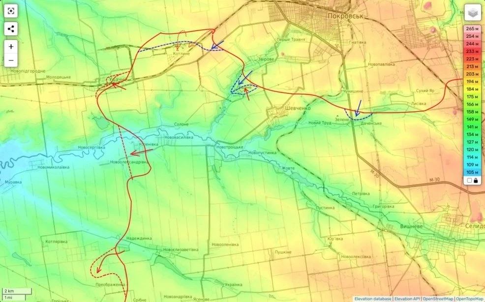 В настоящее время ожесточённое встречное сражение идёт южнее Покровска. Уже несколько дней противник проводит интенсивные атаки с целью прорыва нашей обороны южнее Покровска. Цель, выйти во фланг и тыл группировке, охватывающей город с запада.
