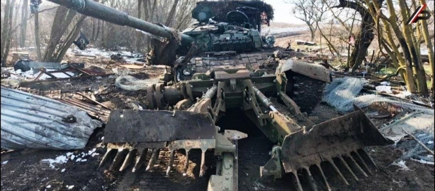 Бойцы ВС РФ захватили танк Т-72 ВСУ с британским минным тралом TWMP