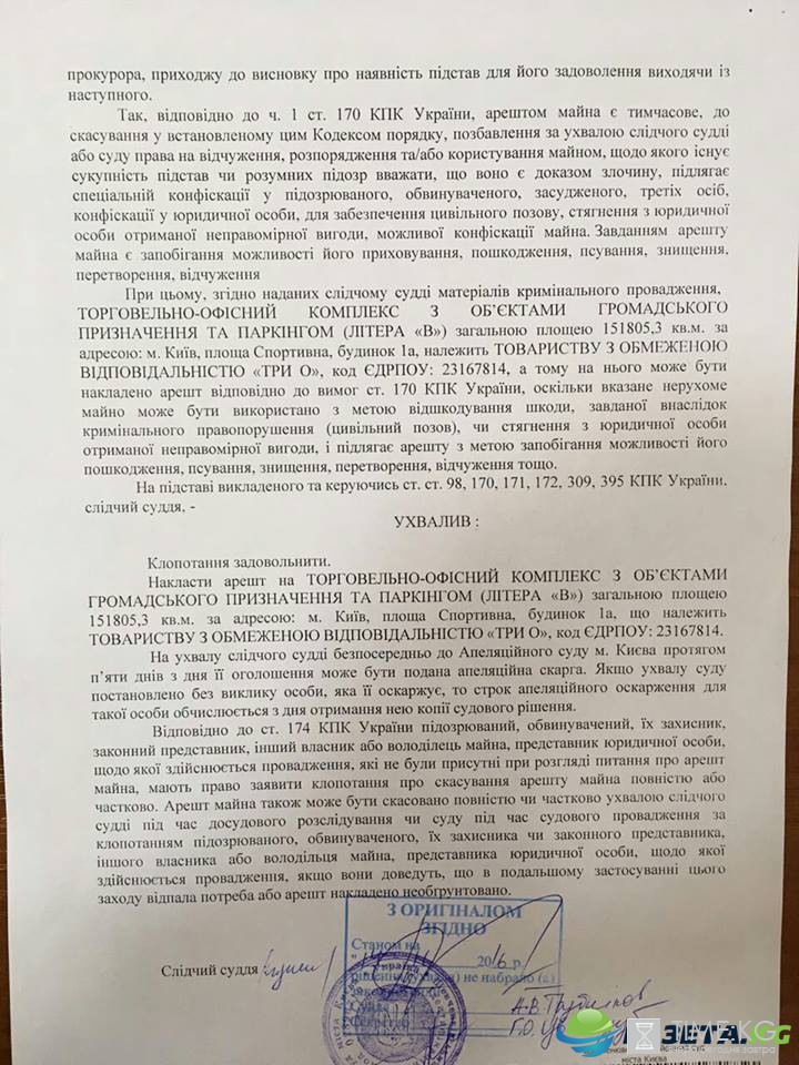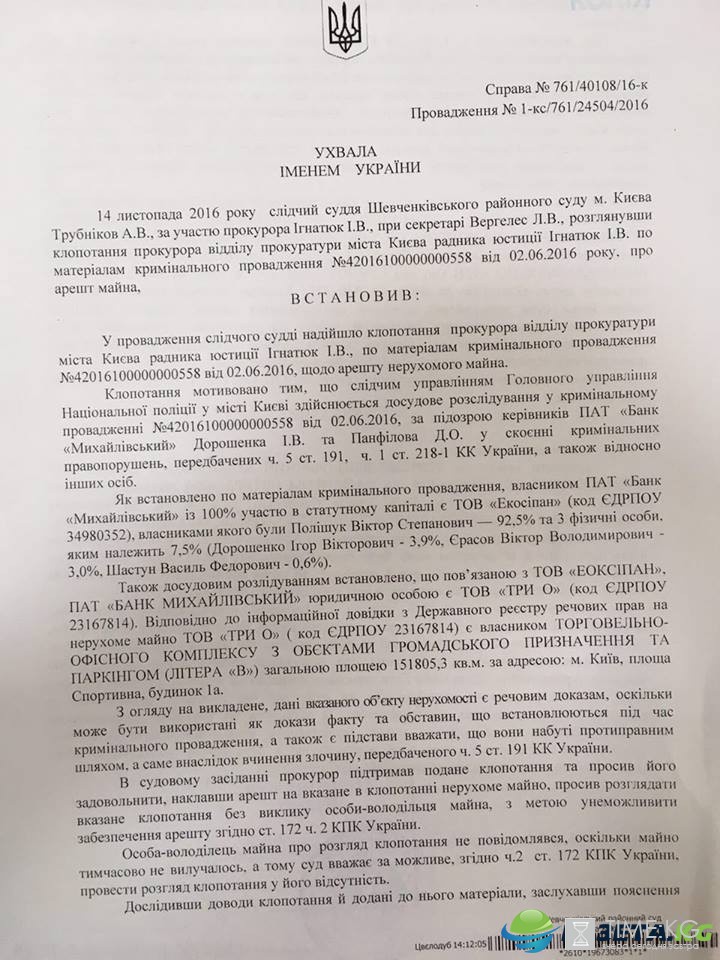 «Сегодня по представлению столичной прокуратуры Шевченковский райсуд Киева принял решение о наложении ареста на собственность Полищука (глава банка «Михайловский», — ред.) — имущественный комплекс «Гулливер»», — написал Луценко.