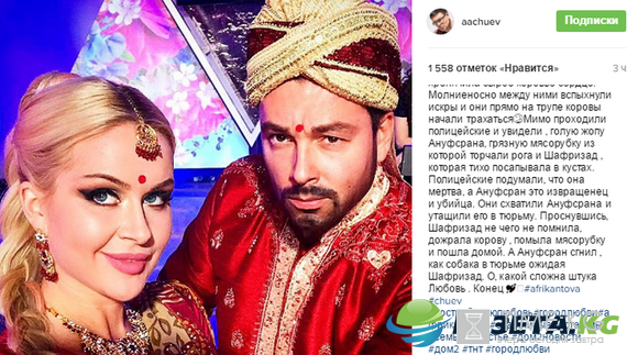 Участники популярного проекта на телеканале «ТНТ» «Дом-2» выступили в сценках актерской школы в образе индийской пары. Бенефис Марины Африкантовой и Андрея Чуева покажут в среду, 30 ноября в эфире шоу. Своими публикациями влюбленные похвастались в соцсети Инстаграм 24 ноября.