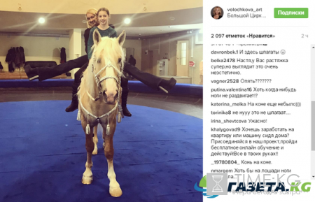 На фото Анастасия восседает на золотистой лошадке вместе с дочерью, и ноги балерины широко раскинуты в стороны. В подписи к фото, она отмечает, что очень благодарна Эдгарду за приятные впечатления закулисья и незабываемые впечатления. Поклонники разразились негодующими комментариями: «Когда ты НЕ раздвигаешь ноги?». «Настя, у вас растяжка супер, но выглядит это очень не эстетично».
