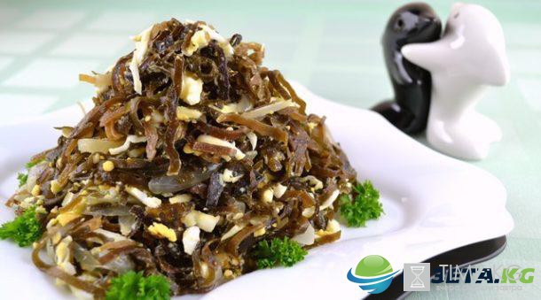 Все очень просто: лук надо нарезать полукольцами и обжарить на масле, добавить морскую капусту и натертые на терке яйца, при желании — заправить майонезом, но можно оставить и так.