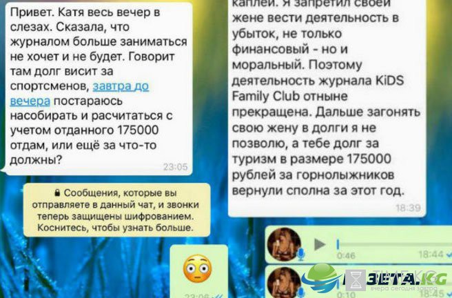 После ряда просьб вернуть деньги Екатерина перестала выходить на связь с Элиной. «Она даже ничего мне не объяснила, – возмущается Камирен. – Вместо этого мне написал ее супруг Евгений Максимов и сообщил, что возвращать деньги его жена мне не собирается. Не понимаю, почему мне пишет он, учитывая, что я вообще никогда не имела с ним дел! Почему Катя отмалчивается!? Я в шоке от такой неблагодарности людей, учитывая, что в том числе они и благодаря нашему общему бизнес переехали из Екатеринбурга в Москву. Я хочу сказать, что я больше не имею никакого отношения к журналу и агентству зарубежной недвижимости и путешествий. Поэтому я не ручаюсь, что также, как меня, мошенница Катя не кинет партнеров или мам, которые платят деньги ей за то, чтобы она разместила их детей в журнале»...