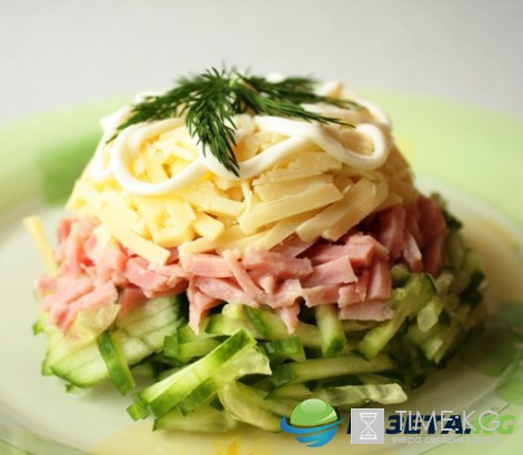 Салаты на Новый год 2017: рецепты пошагово с фото. Сырный салат с ветчиной и огурцом