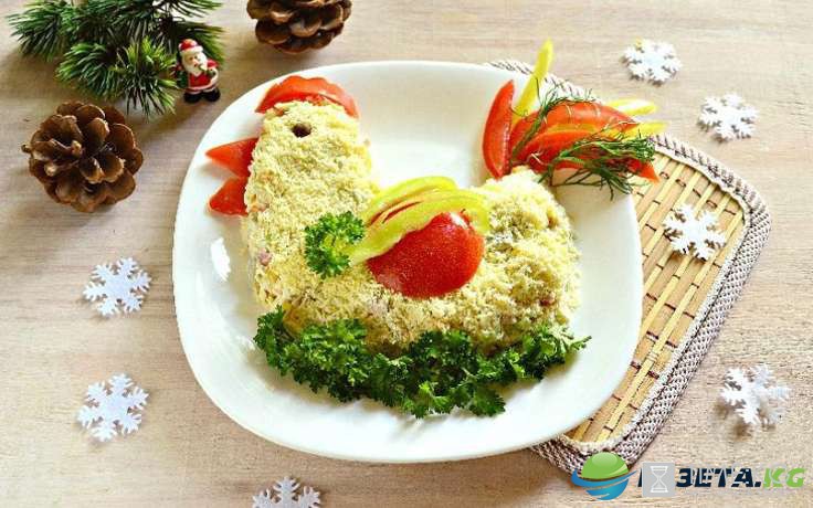 Салат Петушок на Новый год 2017 с фото, салат Петух и Огненный Петух к новогоднему столу