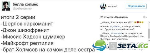 Шерлок 4 сезон 2 серия смотреть онлайн 08.01.2017: жив ли Ватсон - соцсети шокированы, видео. Никто не будет отрицать, что сериал про Холмса круто отличается от остальных. Прежде всего динамичностью и выверенными диалогами, подчас очень смешными шутками и вкусными картинками. Но пожалуй во второй серии с поворотами сюжета явный перебор. Холмс стал наркоманом для того чтоб помириться с Ватсоном, в результате чуть не погиб. Новый странный персонаж Калвертон Смит, монологи и поведение которого просто взрывают мозг. Умершая Мери постоянно присутствует среди живых, миссис Хадсон горячая не на шутку. И наконец, дочь Смита, психоаналитик Ватсона и сестра Холмса в одном варианте...И этот персонаж стреляет в Ватсона...