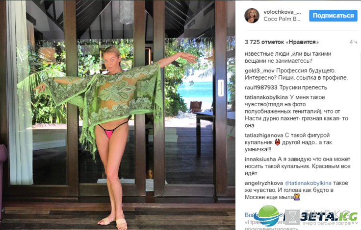 С каждой фотосессией поклонник отмечают, что одежды на звезде становится все меньше, а последние снимки, на которых Анастасия предстала в трусах просто микроскопического размера, и вовсе раскритиковали. Большинство комментаторов, как говорится, не могли оторваться от темы. Некоторые даже предположили, что Волочкова случайно перепутала размер, а трусики принадлежат ее дочери.
