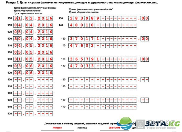 - В разделе № 2 доходы распределяются по датам. Здесь следует вписывать только те доходы, которые были получены на протяжении трех месяцев.