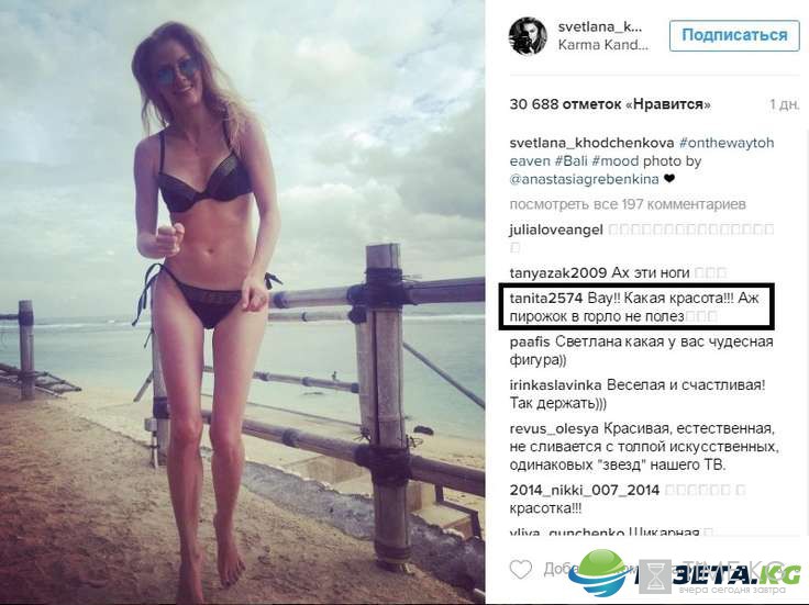 Как известно, очаровательная актриса в данный момент отдыхает на Бали – райском острове, атмосфера которого располагает и расслабляет. Томить своих почитателей Светлана не стала и, на радость фанатам, выложила фотографию в купальнике. Черное бикини только подчеркнуло стройную и подтянутую фигуру девушки, актриса получила сотни восторженных комментариев относительно своей формы. «Я чуть пирожком не подавилась, вы очаровательны», «откройте секреты красоты, наконец!» «такая подтянутая фигура – не просто результат диеты, это и спорт и правильное питание». Словом, Свете есть чем гордиться.