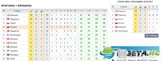 Сезон биатлона Кубка Мира 2016 – 2017: где проходит, результаты, видео. Наша женская команда представлена Дарьей Домрачевой и Анастасией Кузьминой, остальные участницы из молодежной сборной. Мужчины в своем крепком, стабильном коллективе. Пока призером Кубка Мира является Франция, у которой 15 золотых, 9 серебряных и 5 бронзовых медалей. Наша сборная на четвертом месте. Будем продолжать болеть нашу сборную и надеяться на призовые места в остальных этапах.