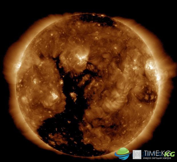 Скорость солнечного ветра – 437,4 километра в секунду, плотность – 5,2 протона на сантиметр кубический;