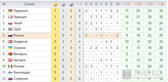 Тур де ски 2017 результаты, общий зачет на 8 января 2017: медальный зачет сборной России, турнирные таблицы