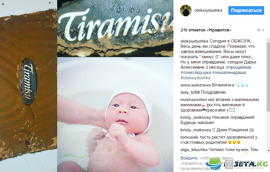 «Сегодня я ОБЖОРА. Весь день ем сладкое. Понимаю, что завтра взвешивание. Весы могут показать «минус 0», или даже плюс... Но у меня оправдание, сегодня Дарье Алексеевне 3 месяца», — поделился счастливый отец в комментарии к снимку.