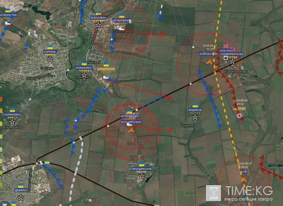 Так же в списке указано, что сильные бои ведутся в районе Старомихайловки-Красногоровки. В направлении Еленовка – Докучевск украинские силовики применяют минометы. Так же обозначено злополучное Зайцево, для обстрела по нему и новому блокпосту используется СПГ (станковый противотанковый гранатомет).