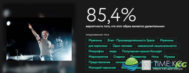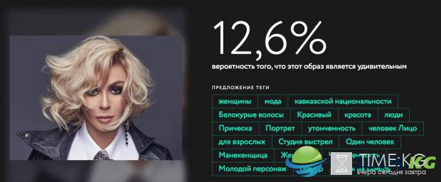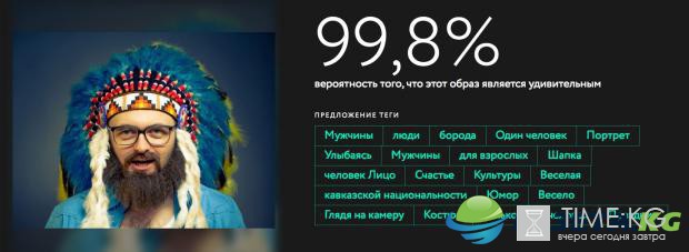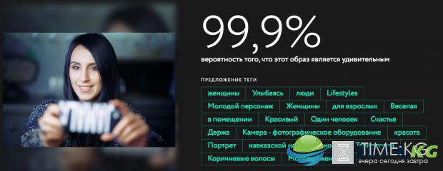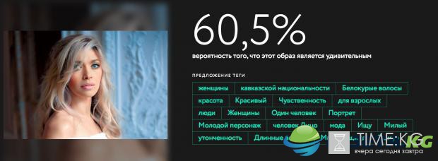 Сервис выставляет оценку в процентах, а также пытается угадать, что изображено на снимке, с помощью тегов.