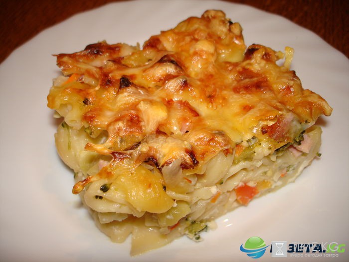 Творожная запеканка: Запеканка творожная слоеная с макаронами.
