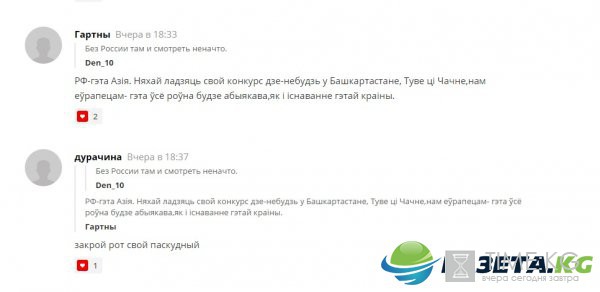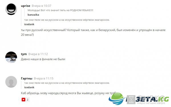 Другой пользователь яро прицепился к тому, что песня была исполнена на белорусском языке, назвав его "мертвой змагарской мовой". Впрочем, ему дали достойный ответ, рационально отметив, что Россия – это вообще Азия, которая, свой аналог "Евровидения" может провести разве что "где-то в Туве, Чувашии или же в Чечне".