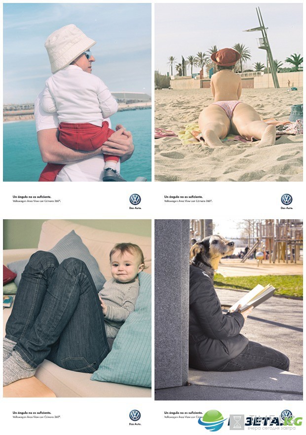 Volkswagen начал внедрять систему кругового обзора Area View в своих моделях с 2014 года. В Испании 360-градусные камеры рекламировали с помощью другой странной рекламы — на ней людей изобразили с чужими головами.