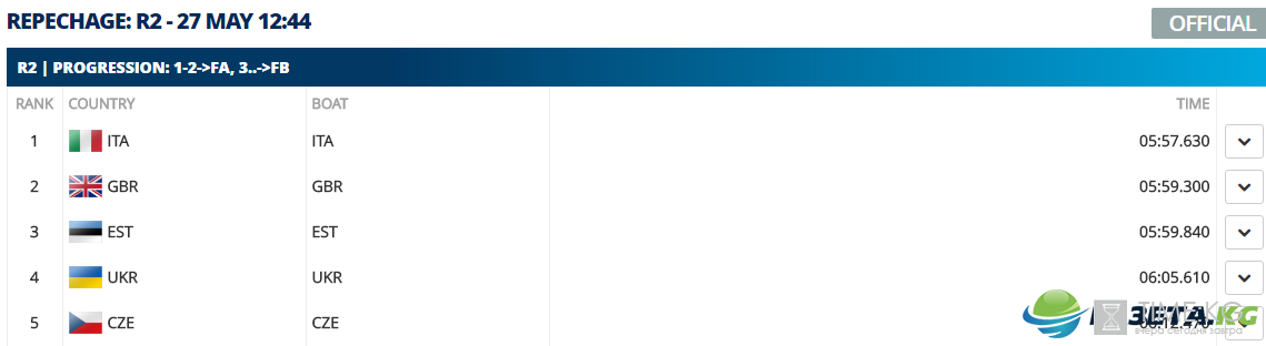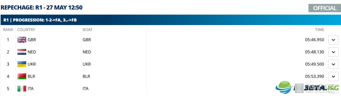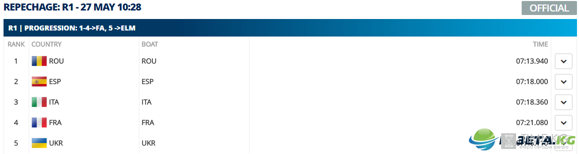 Четверка парная в составе Сергея Гриня, Артема Морозова, Александра Надтоки и Ивана Довгодко остановились на четвертом месте в квалификационном заезде с результатом 06:05.610 и также примут участие в финале В вместе с командами Германии, Эстонии, России, Румынии и Чехии.