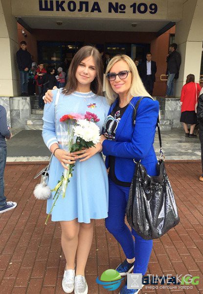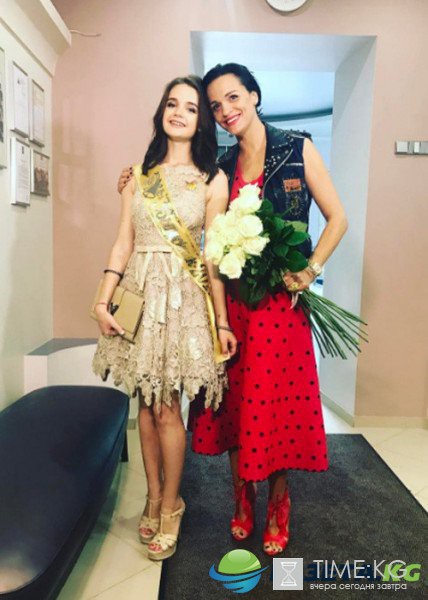 На звёздной выпускной дорожке засветилась и певица Слава со своей дочкой-выпускницей Александрой Морозовой. Звёздная мама для последнего звонка выбрала красный наряд в эффектный чёрный горох, а вот Александра появилась перед объективами фотокамер в светло-кремовом платье миди-длинны, перевязанной характерной золотистой лентой выпускника 2017. Слава, опередив дочь, выложила фото в соцсеть, подписав его «Последний звонок!!! Нарыдались». Артистка рассказала, что во время торжества её переполняли смешанные чувства радости и грусти.