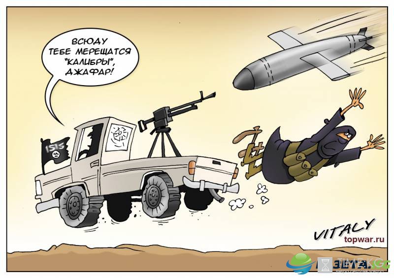 Наконец, телеканал «Звезда» со ссылкой на источник в министерстве обороны РФ сообщает, что боевики «ИГ» смогли достичь договорённостей с курдскими отрядами по отходу из Ракки в направлении Тадмора (Пальмиры). Известно, что первые несколько групп игиловцев уже попытались выйти на маршрут в сторону Пальмиры. Однако в этот момент были атакованы российской военной авиацией. По сообщениям МО РФ, в результате авиаудара были уничтожены не менее 120 террористов и 32 внедорожника, оснащённые зенитными установками и крупнокалиберными пулемётами.