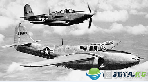 Реактивный P-59 Airacomet в сопровождении Р-63 Kingcobra