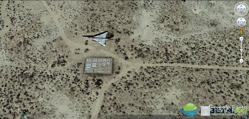 Спутниковый снимок Google Earth: B-58, совершивший вынужденную посадку в пустыне