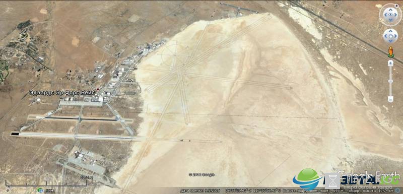 Спутниковый снимок Google Earth: авиабаза Эдвардс, вид с высоты 13 км