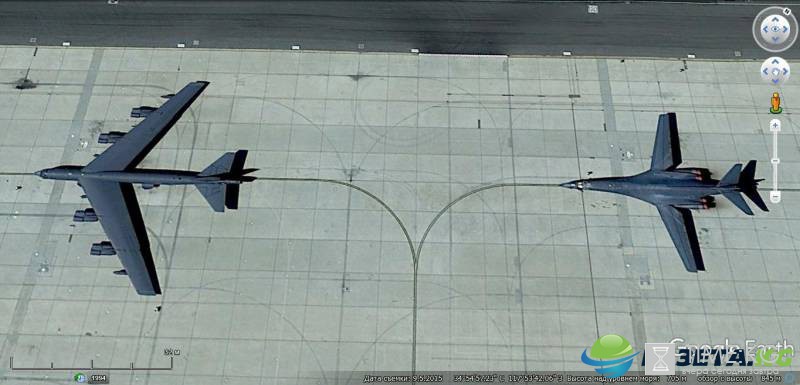 Спутниковый снимок Google Earth: бомбардировщики В-52Н и В-1В на авиабазе Эдвардс