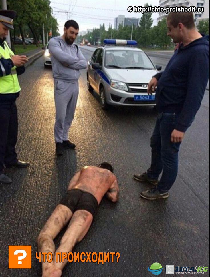 Полуголый дебошир бросался под колеса машин в Уфе – очевидцы сняли на видео момент задержания