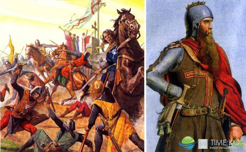 Слева - "рыцари смерти" с характерными эмблемами на туниках вступают в бой. Справа - один из гипотетических портретов Фридриха Барбароссы, нарисованных в XIX веке. Этого знаменитого персонажа изображали многие художники, а поскольку его подлинный облик никому не известен, они руководствовались лишь собственным воображением. Единственным общим местом на всех портретах была рыжая борода различной длины и формы.