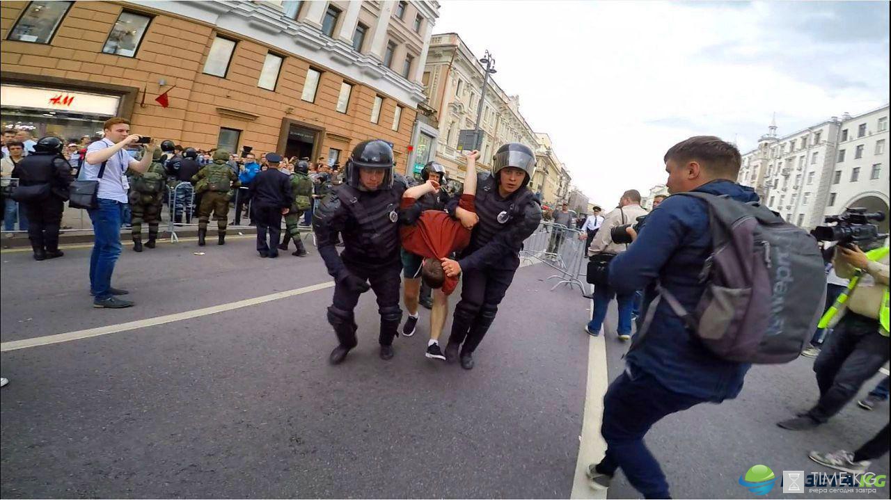 Люди стали стекаться к Тверской задолго до начала акции. Как и в ходе мартовского митинга, поначалу отличить участников от праздно гуляющих москвичей было сложно и все проходило относительно мирно, но затем начались задержания причем неоправданно жесткие. Полицейские вырывали людей из толпы, били дубинками и ногами. Некоторым везло больше — их вели к полицейским автобусам просто под руки, а не волоча по земле. По пути к автобусам задерживаемые иногда теряли наушники, ботинки и другие личные вещи, полицейским приходилось нести их обратно, чтобы отыскать потерянные вещи и затем вернуть в автобус: