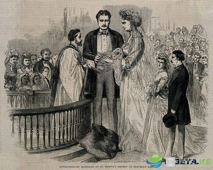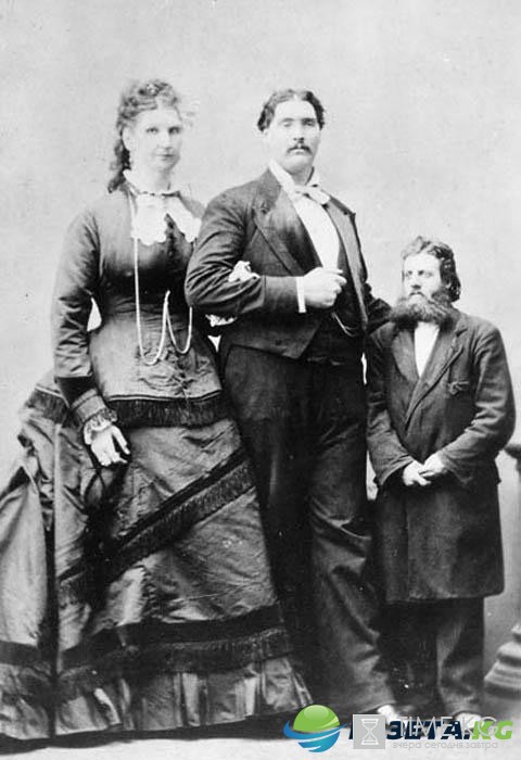 Эта пара высоких людей жила в XIX веке и стала первой официально зарегистрированной четой гигантов. Рост Мартина Вана Бурен Бэйтса был 219 сантиметров, а его супруги Анны Хейнинг Свон – 230 сантиметров. Если посмотреть на фотокарточку влюбленных, то можно увидеть рядом с ними священника, у которого обычный среднестатистический рост. Именно он проводил церемонию венчания молодоженов-гигантов.