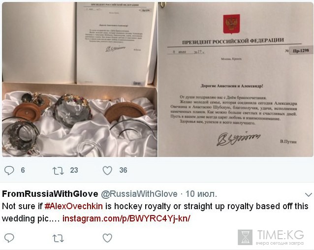 Стало известно, что Путин подарил Овечкину на свадьбу