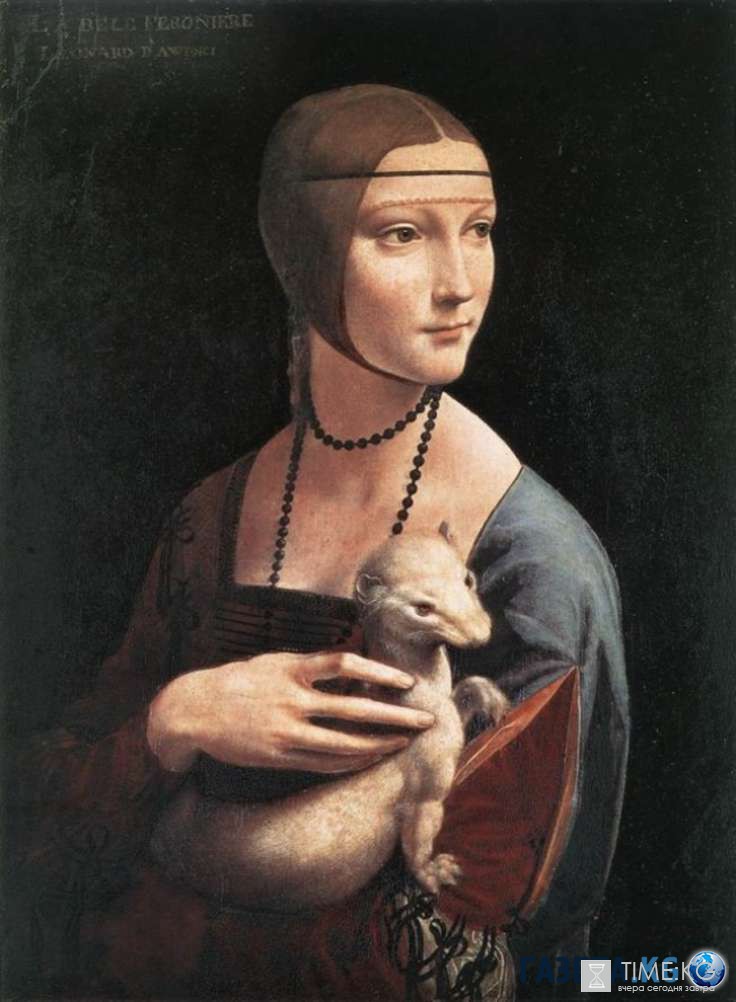 Чечилия Галлерани была девушкой из благородной итальянской семьи, которая в возрасте 10 (!) лет уже была помолвлена. Однако когда девочке было 14, помолвка по неизвестным причинам была расторгнута, а Чечилия отправлена в монастырь, где и познакомилась (или же все это было подстроено) с герцогом миланским Людовико Сфорца. Завязался роман, Чечилия забеременела и герцог поселил девушку в своем замке, но тут пришло время вступить в династический брак с другой женщиной, которой, конечно же, присутствие любовницы в их доме не понравилось. Тогда после родов Галлерани герцог забрал себе сына, а ее выдал замуж за обедневшего графа.