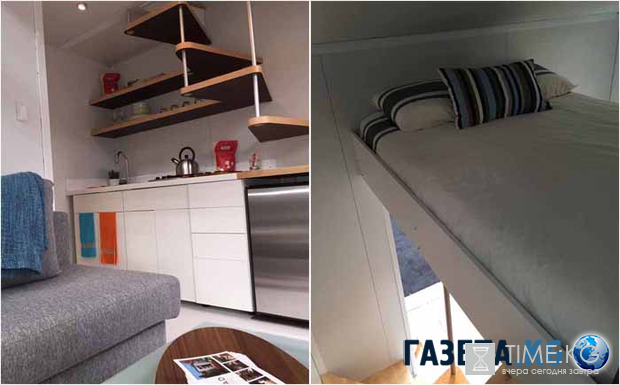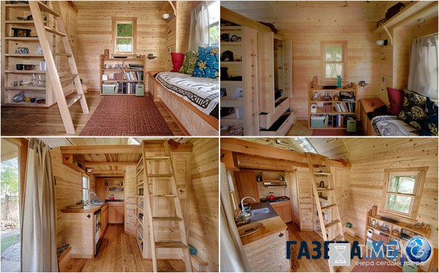 Все в домике компактно, эргономично и уютно. Многие вещи внутри сделаны из использованных ранее материалов, например, сайдинг и газовая плита.