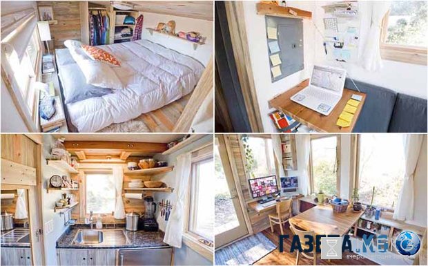Мейси Миллер, архитектор из Айдахо, продала свой дом площадью 800 квадратных метров и построила домик площадью 60. Основанием послужила платформа старого трейлера, который обошелся в 11 500 долларов.