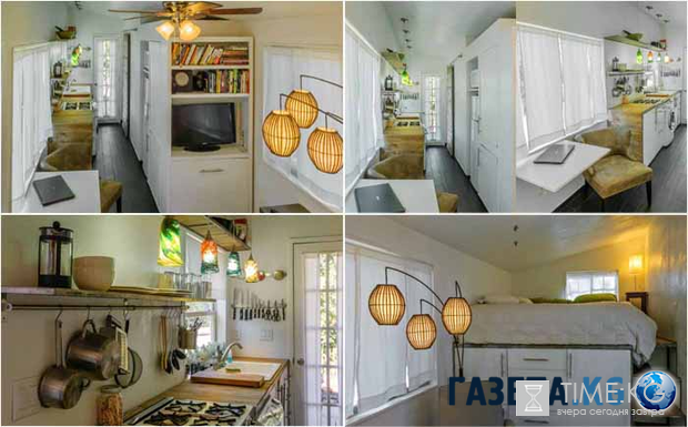 Дом находится там, где живёт хозяин! Но если у дома есть колеса, и он может легко перемещаться, это даже лучше. Дом Джины Брамуччи построен на платформе старого трейлера. Мобильный домик полностью облицован деревом. Внутри очень симпатично и на импровизированном втором этаже даже оборудована спальня – «изящная простота».