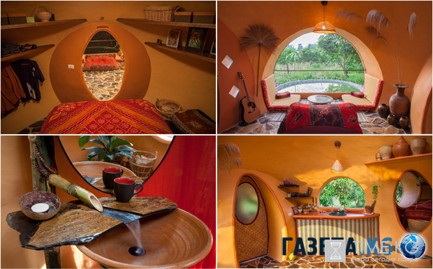 При строительстве были использованы экологические материалы и традиционные цементные блоки и кирпич. Это жильё наглядно демонстрирует, насколько маленький домик может быть ярким и интересным.