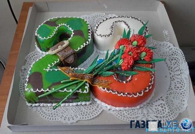 - праздничный торт с пожеланиями – на самом деле, эту идею многие могут назвать банальной, но если задействовать творческий подход, то это может стать отличным подарком (сверху на кондитерском изделии можно разместить пожелания мира, добра и процветания, а сам торт может быть выполнен в форме танка или военного самолета);